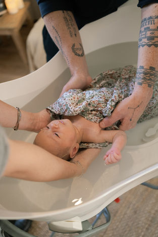 Marlène, accompagnante périnatale, prend le temps d'échanger avec vous sur votre accouchement et les premiers jours avec bébé. Elle vous transmet ensuite les techniques du bain enveloppé : comment envelopper votre nouveau-né, l'accompagner dans l'eau en douceur, et l'apaiser. Un moment de peau à peau suivra si vous le souhaitez, pour vous reconnecter à vous-même et à votre bébé.